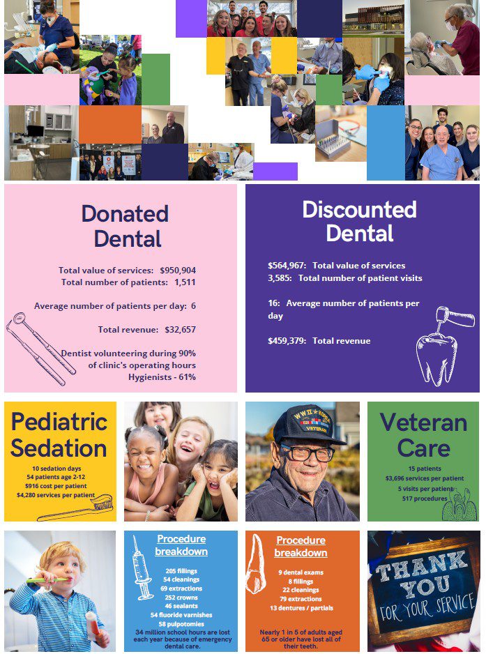 To relieve dental pain and suffering while preserving oral health through preventative education and comprehensive treatment for those with no other access to dental care.